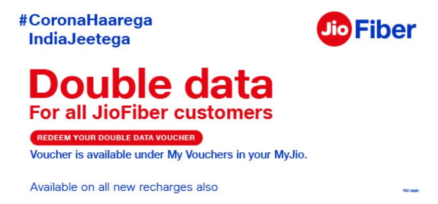 Reliance Jio, the telecom and broadband service provider company, has announced to provide double data benefits to its broadband users. The company has announced this through its official Twitter handle. Reliance Jio had earlier announced double data benefits with select plans for all its prepaid mobile users. Reliance Jio Fiber users are being offered this plan with every plan. Reliance Jio has written in his tweet, you did not face any problem in keeping connected, so we are offering you double data benefits. Presently, due to coronavirus, there is a lock down in the entire country and everyone is doing work from home.